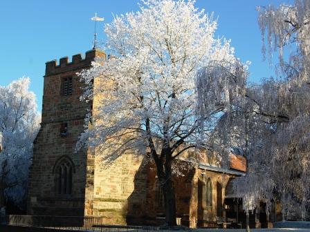 The church at Clifton, Warwickshire on a frosty winter morning